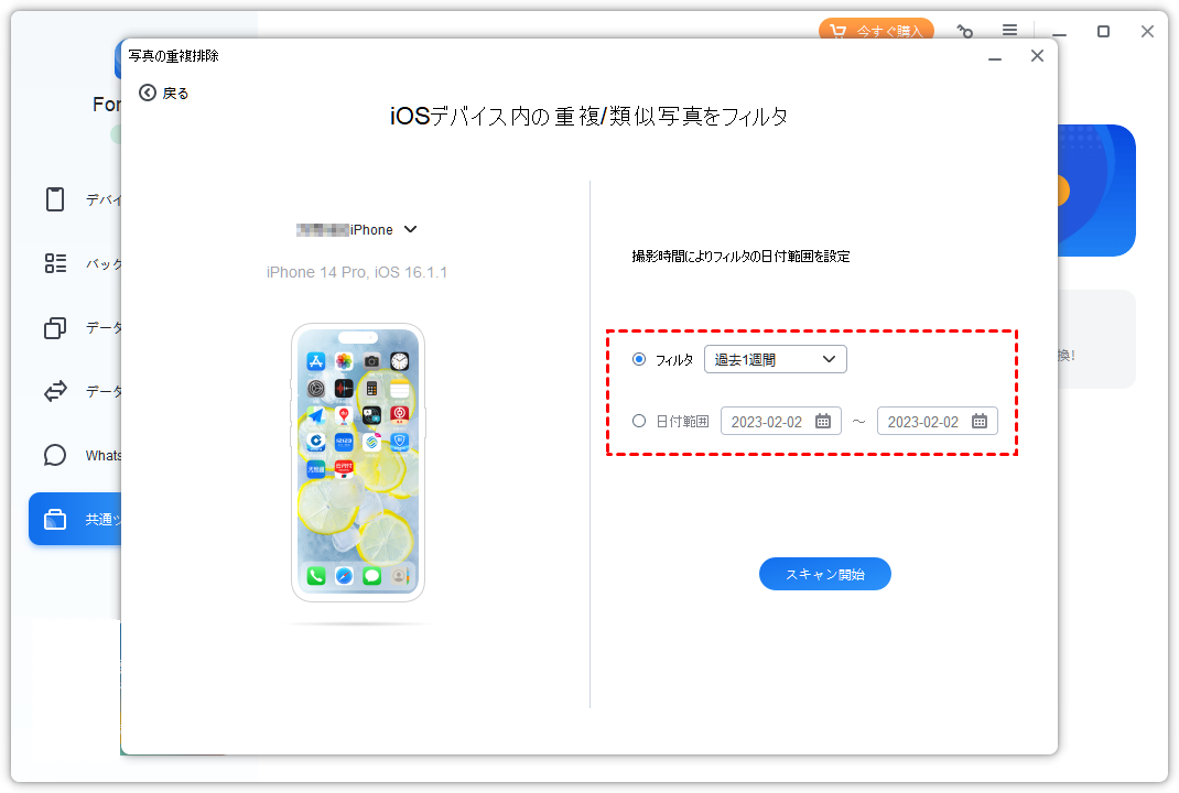 ステップ 4. フィルター日付範囲を設定し、スキャンを開始します。