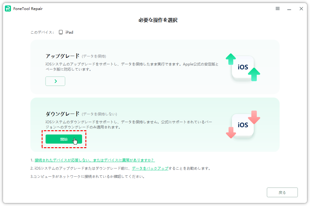 手順3. 「ダウングレード」セクションに移動し、「開始」をクリックします。