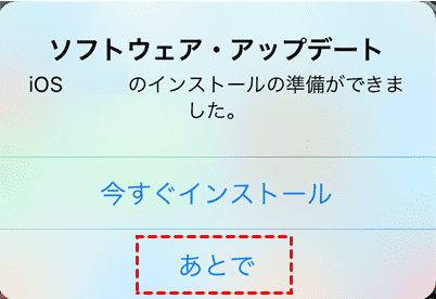 ► iOSアップデートがダウンロード完了の場合:「あとで」を選択