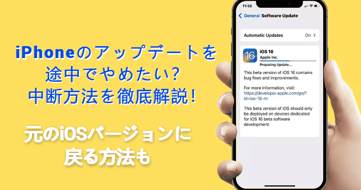 iPhoneのアップデートを途中でやめたいですか?この記事では、新しいiOSバージョンへのアップデートがダウングレード中、ダウングレード完了後、インストール中の場合に分けて、それぞれの中断方法を解説します。また、もしiPhoneをダウングレードして元のiOSバージョンに戻したい場合も、方法を紹介します。