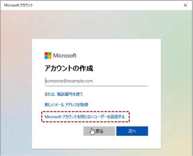 ステップ 4. 続行するには、「Microsoftアカウントを持たないユーザーを追加する」リンクをクリックする必要があります。