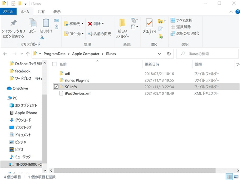 SC Infoはコンピュータの認証を記録するフォルダです。パソコンからそれを削除してみて、iTunesは新しいSC情報を再作成することができます。この方法で「一時的な問題でリクエストを完了できませんでした」問題を解決できます。
