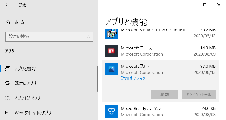 ステップ 2. 「Microsoftフォト」を選択して、非表示の「詳細オプション」リンクをクリックします。