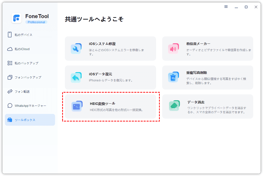 ステップ2. ホーム画面で、「共通ツール」の下にある「HEIC変換ツール」をクリックします。