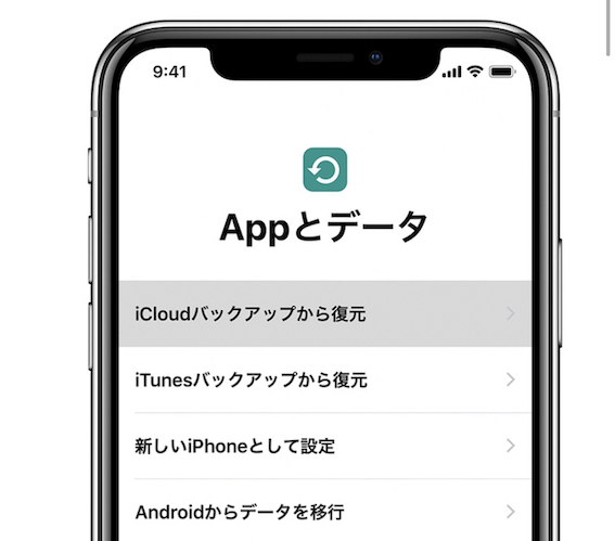 ステップ3. 初期設定ガイドに従います。「Appとデータ」画面で「iCloudバックアップから復元」をタップします。