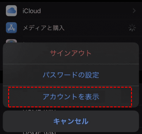 ステップ2. 「メデイアと購入」をタップして、ポップアップで「サインアウト」を選択します。