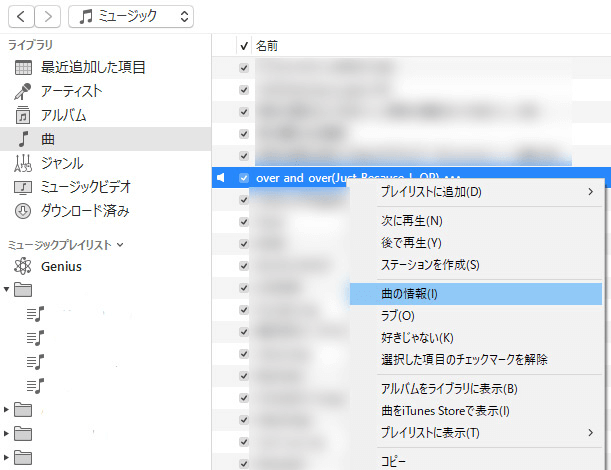 ステップ1. iTunesを開き、着信音に設定したい曲を見つけて右クリックし、「曲の情報」を選択します。