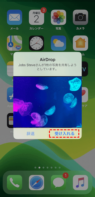 ステップ 4. ターゲットiPhone/iPad/Macで「受け入れる」を選択すると、AirDropはiPhone間でアルバムを共有するのに役立ちます。