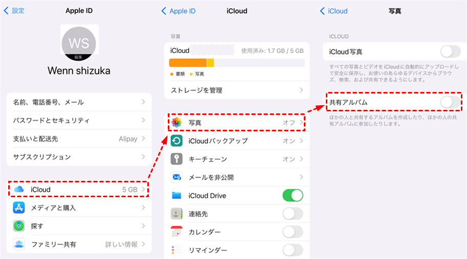 - iCloud設定の確認:iPhoneの設定アプリでiCloudの設定を確認し、共有アルバムが有効になっていることを確認してください。設定がオフになっている場合は、トグルスイッチをオンにしてください。