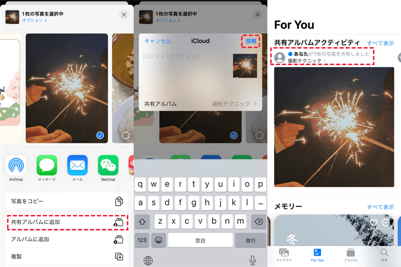 心配しないでください!次のパートではiPhoneで写真アルバムを共有する4つの高速な方法を紹介します。