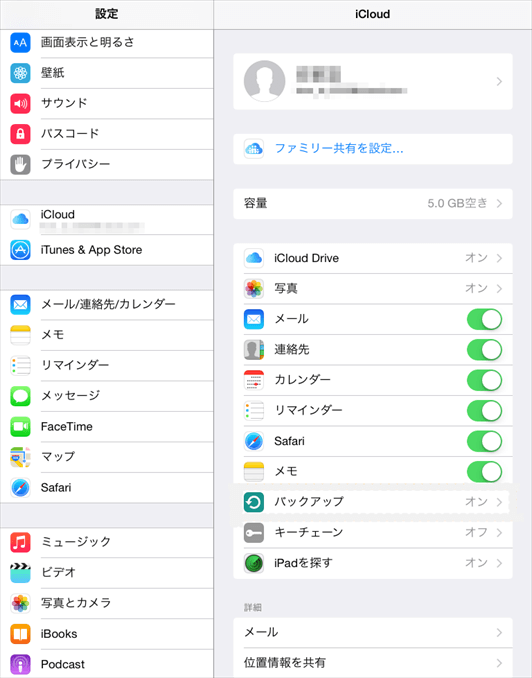 - 「設定」をタップ>「あなたの名前」をタップ>「iCloud」をタップ>「iCloud Drive」または「このiPadを同期」をオンにします。