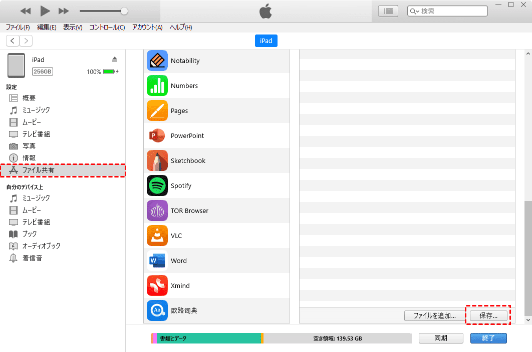 方法2:iTunesでiPhoneアプリ内のファイルをパソコンに取り込む