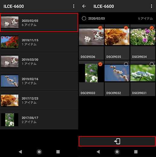 ステップ 3. スマートフォンのImaging Edge Mobileを開き、カメラリストからカメラを選択すると、転送が始まります。