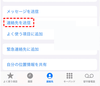 方法3:「連絡先を送信」でiCloudのvCardをエクスポートする