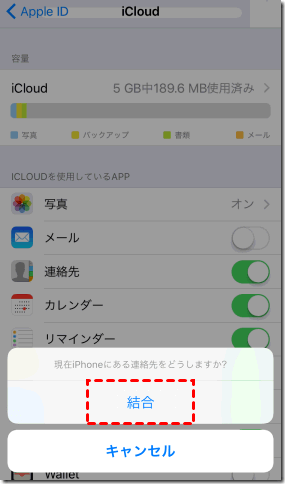 ステップ 2. 「現在iPhoneにある連絡先をどうしますか?」と聞かれたら、「結合」を選択します。