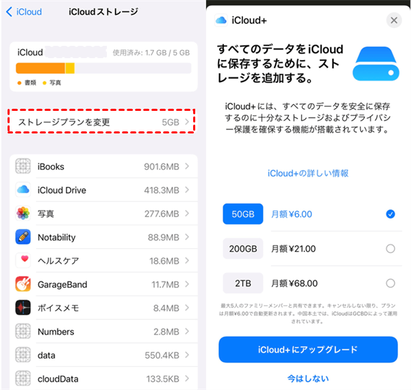 手順3:もっとiCloudストレージを購入したい場合は、「ストレージプランを変更」をクリックしてストレージプランを選択できます。