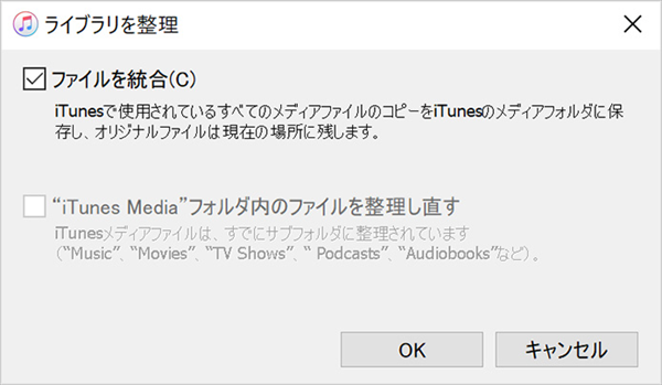 ヒント:iTunesメディアファイルを新しいデフォルトの場所に移動したい場合は、iTunesのファイル>「ライブラリ」>「ファイルを統合」を選択することができます。