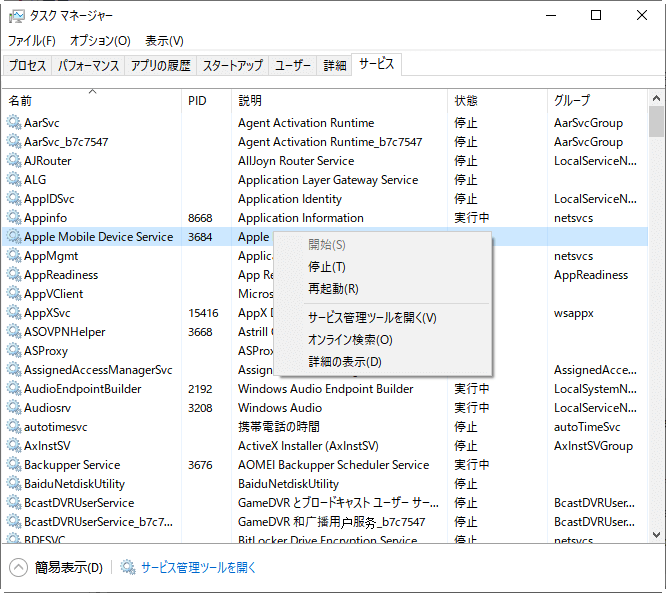 Apple Mobile Device ServiceはiOSデバイスをコンピュータに接続するためのドライバです。Wi-Fi接続の問題を修正するためにドライバを再起動することができます。以下の手順に従ってください。