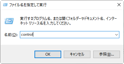 1. Windowsキー + Rを押し、Controlと入力してコントロールパネルを開きます。