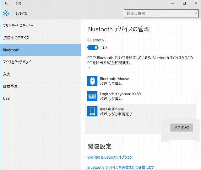 Bluetooth経由でiPhoneからノートパソコンにファイルを転送する方法