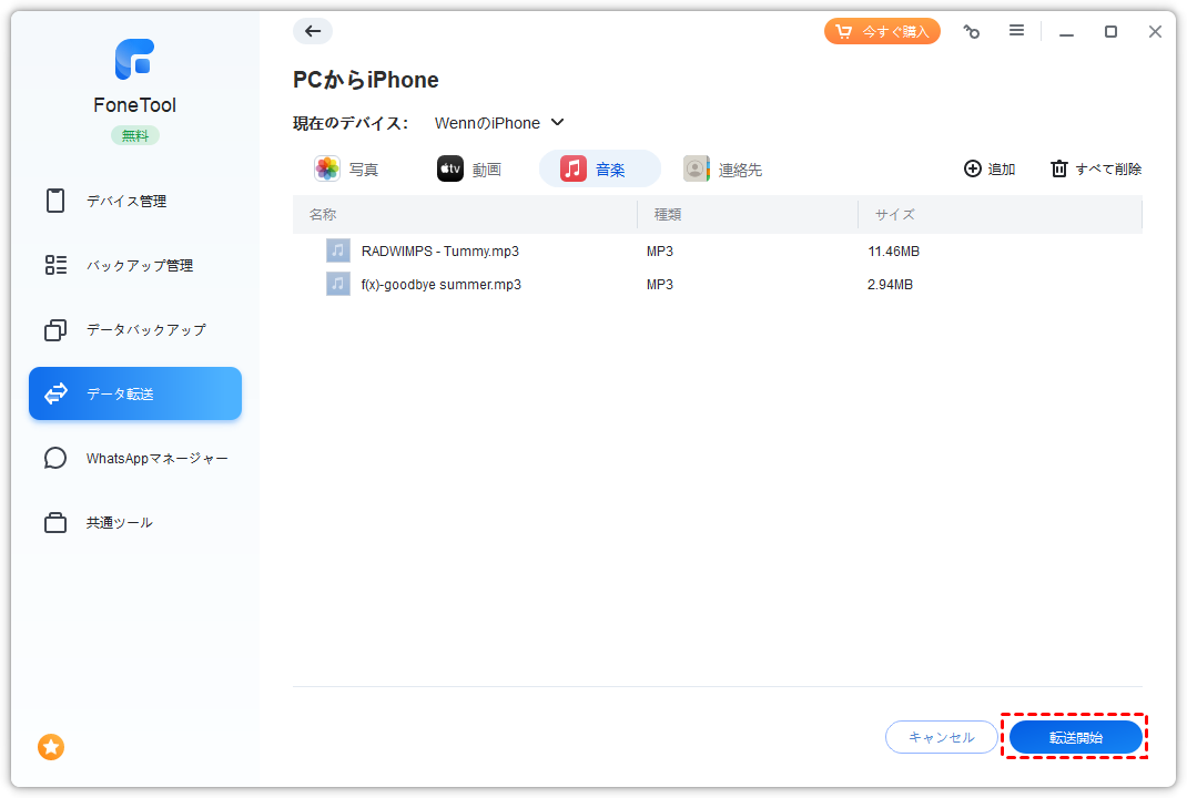 方法1:FoneToolでパソコンからiPadのミュージックに音楽を入れる