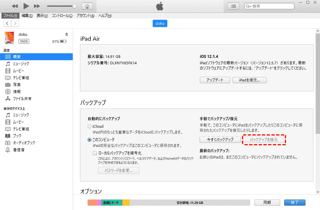 ステップ5. iTunesで同じ操作を繰り返し、「バックアップを復元」をクリックします。