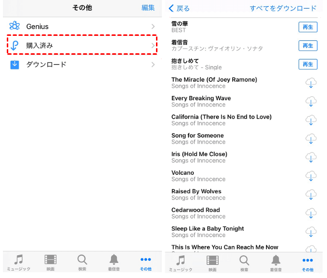 方法2:iTunes Store経由でiPodからiPhoneに曲を移す