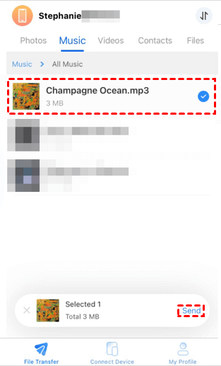 ステップ 2. 「File Transfer(ファイル転送)」>「Music(音楽)」>「Send(送信)」に進みます。