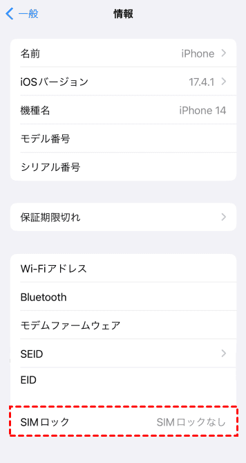 手順 2. 下にスクロールして、「SIMロック」の項目の内容を確認します。