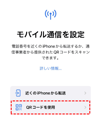 自動でeSIMクイック転送ができない場合、手動でeSIMを有効化にすることができます。QRコード方式でeSIMを再設定する方法を以下に説明します。
