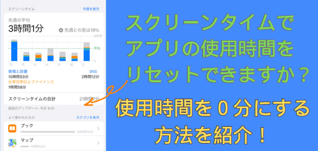 これで、スクリーンタイムの使用時間が0分にリセットされるかもしれません。