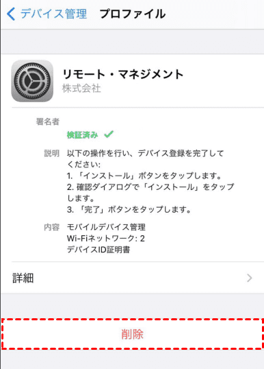 管理者からMDMパスコードを受け取ったら、以下の手順でプロファイルを削除します。