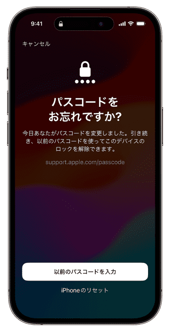 iOS 17以降では、新しいパスコードを忘れてしまった場合でも、一定の条件を満たせば古いパスコードを使って初期化せずにiPhoneのロックを解除し、新しいパスコードを再設定することが可能です。