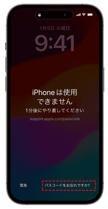iPhoneが完全にロックされていない場合は、まずロック画面に「パスコードをお忘れですか?」という表示が出ているか確認してみましょう。表示されていれば、以下の手順で対応できます。