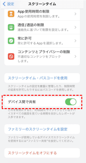 方法5:「デバイス間で共有」をオフにする