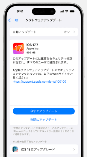 スクリーンタイムの不具合が続く場合は、iOSのバージョンを最新にアップデートしてみましょう。特に古いバージョンのiOSでは、スクリーンタイムに関するバグが発生しやすいので、アップデートするのもおすすめです。