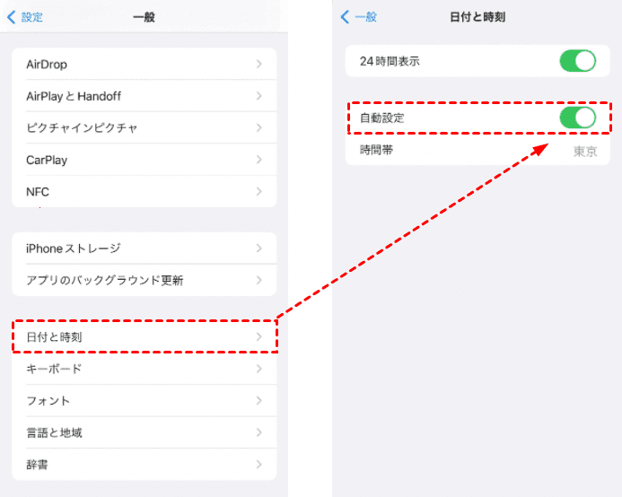 「設定」>「一般」>「日付と時刻」に進み、「自動設定」をオンにしてください。時間設定を見直すことで、問題が解消される可能性があります。