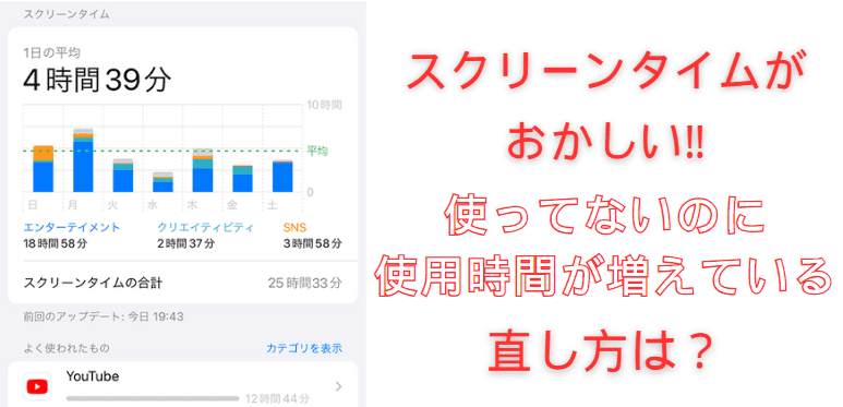iPhoneやアプリを使ってないのにスクリーンタイムの使用時間が増える場合、いくつかの原因と直し方が考えられます。以下では、それぞれの原因に応じた解決方法を紹介します。