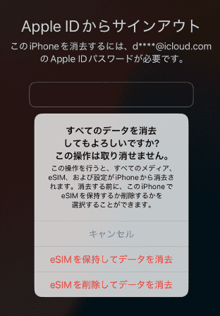これで、iPhoneを初期化する申請手順が完了します。iPhoneをインターネットに接続すると、初期化が開始します。