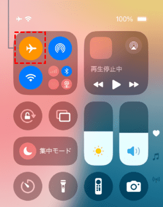 3. 機内モードをタップしてオンにします。(飛行機マークがオレンジ色に変わります)