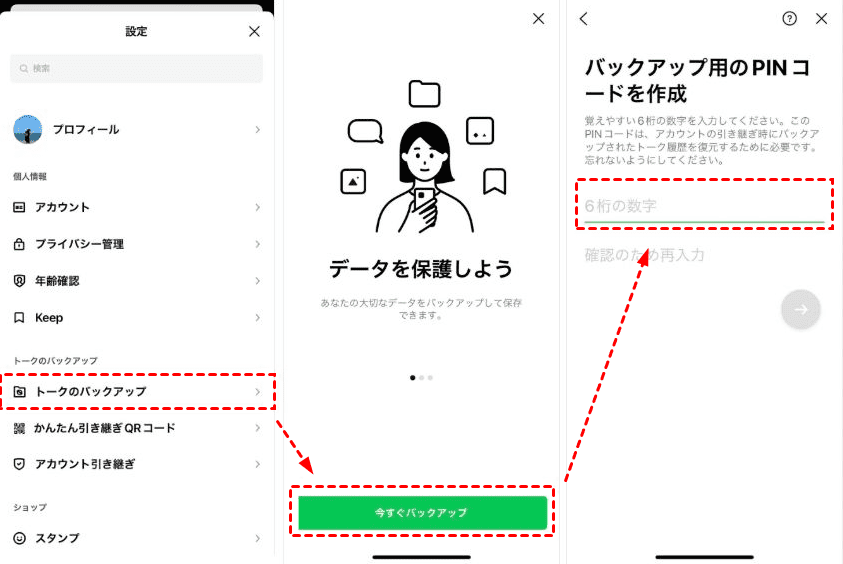 ステップ 4. 次に「設定」>「トークのバックアップ」をタップし、新しいiCloudにLINEのバックアップを作成します。