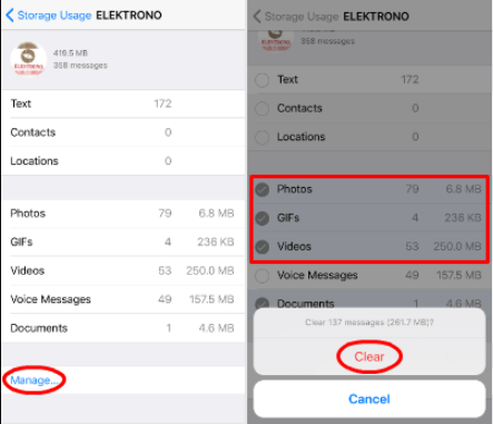 Stap 3. Tik op een chats/contacten > "RUIMTE VRIJMAKEN".