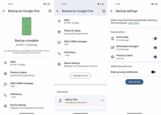 Way 5. Back up the Android phone with Google One App