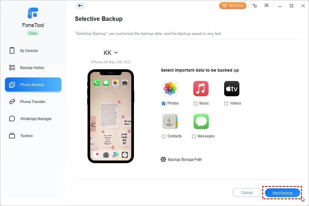 So, how to backup iPhone photos to Synology Nas with FoneTool? Follow the simple steps below: