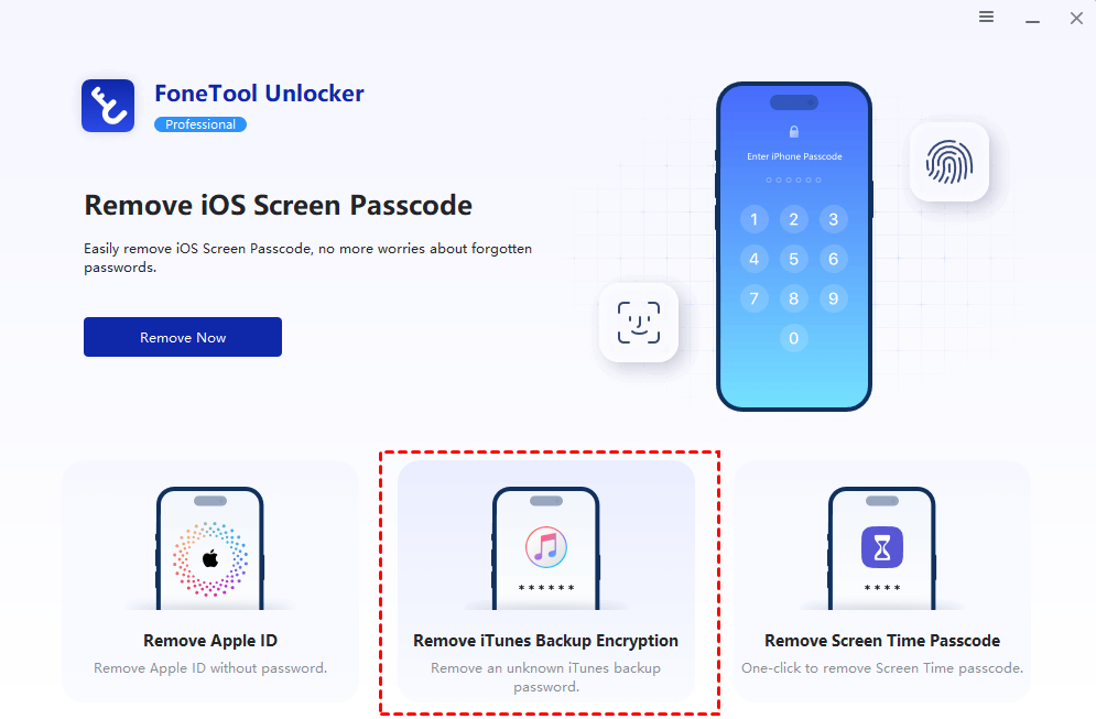 If you forget your iTunes backup password and cannot enable encrypted local backup, then we recommend that you securely remove the password. FoneTool Unlocker provides a reliable and simple solution that can help you unlock backups without losing any data, and you can quickly and securely unencrypt it.