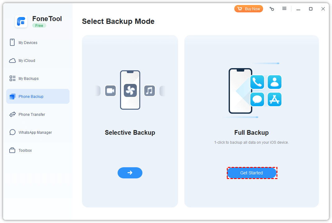 Step 2. Go to Phone Backup > Choose Full Backup for complete data backup.