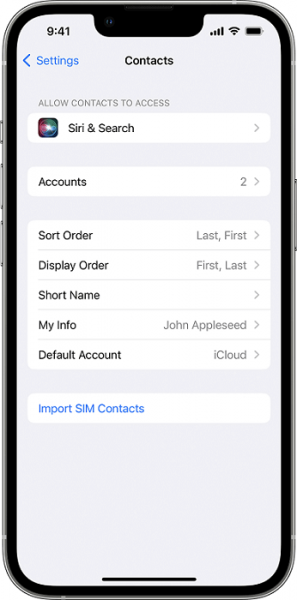 Set up the Contacts app account on iPhone