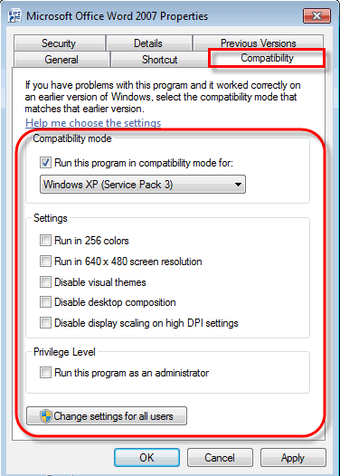 Step 3. From the prompt window, switch to the Compatibility tab > Select Windows 7 from the drop-down menu below Run this program in compatibility mode > Click Apply to save the changes.