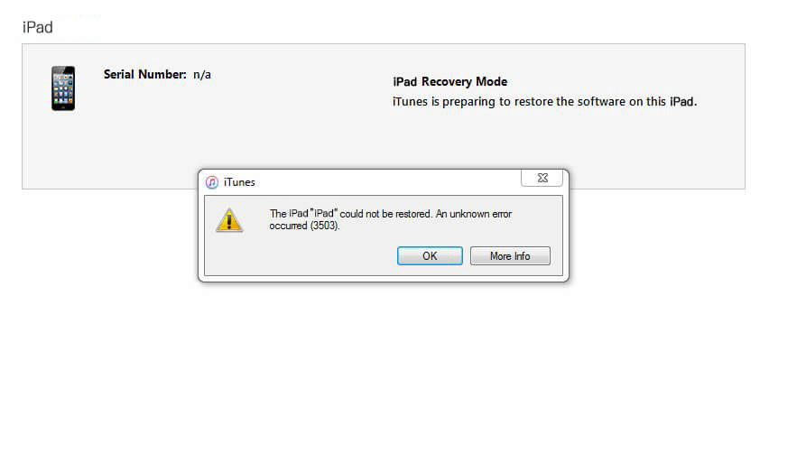 I was updating my iPad to the latest iOS version and the install crashed. Whenever I’m trying to reset the iPad, I get a message from after it extracted the firmware that the iPad couldn’t be restored and that an unknown error occurred (3503). Any clue?