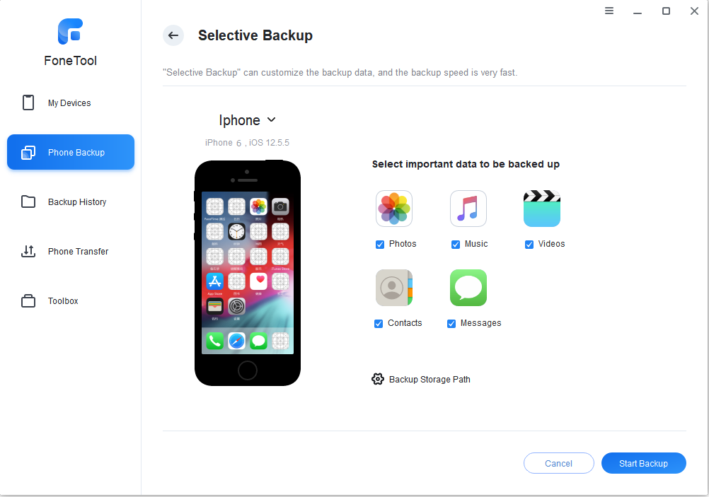 👍🏻 Selective Data Transfer: Unlike iTunes, FoneTool allows you to transfer data between your iPhone and PC selectively.